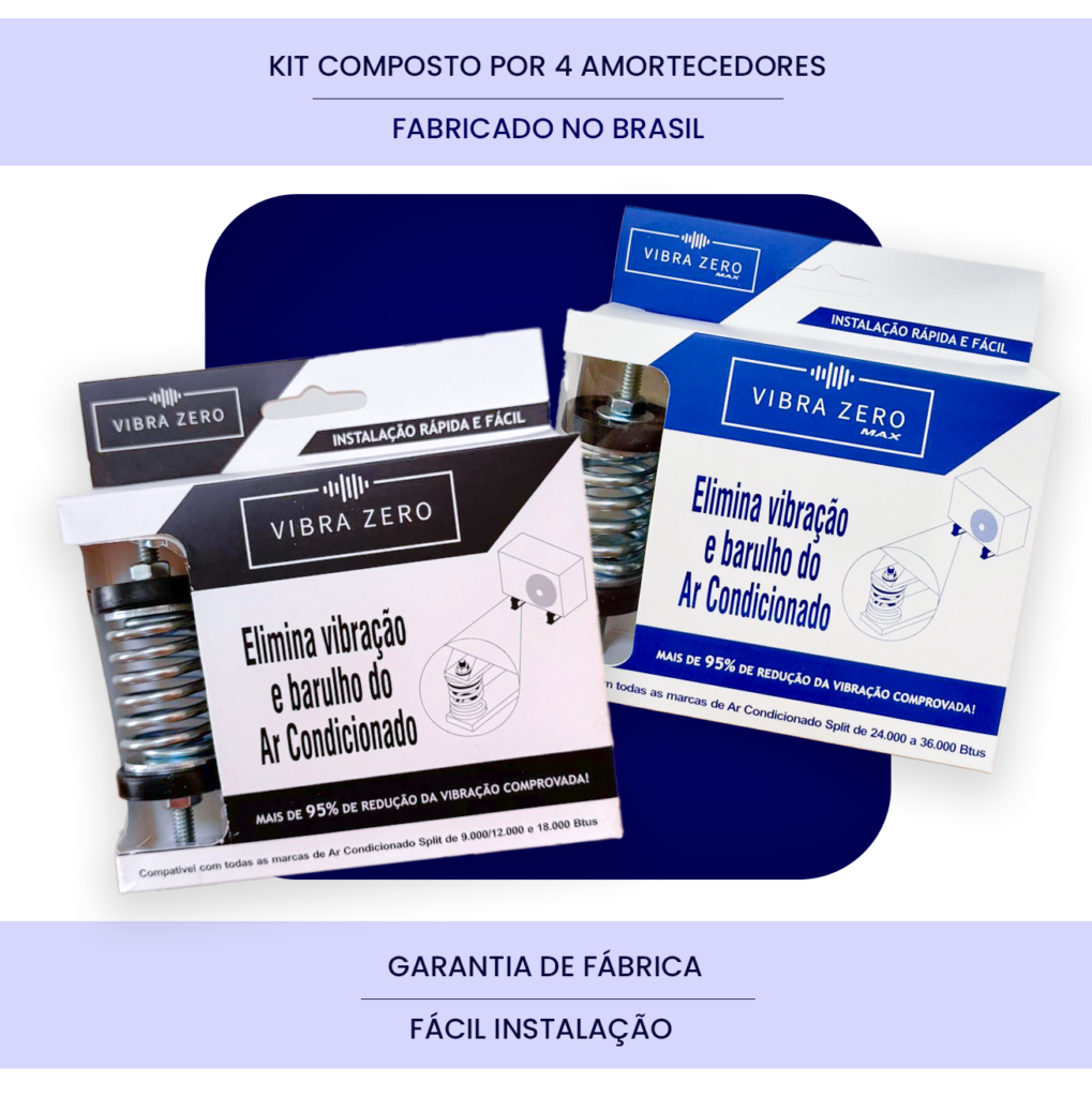 Compatível com ar condicionados de 9.000 a 36.000BTUs, o Vibra Zero é ideal para quem busca aumentar o conforto no ambiente e prolongar a vida útil do equipamento. Ao absorver vibrações e dissipar impactos, reduz desgastes nos componentes e evita barulhos incômodos.